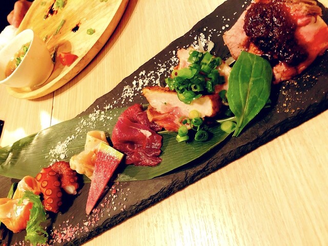 魚と肉刺の盛り合わせ~!!