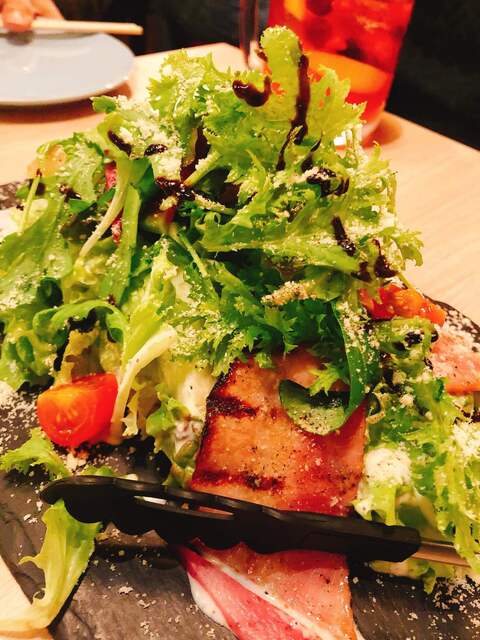 ①薪焼きベーコンのシーザーサラダ(580円)