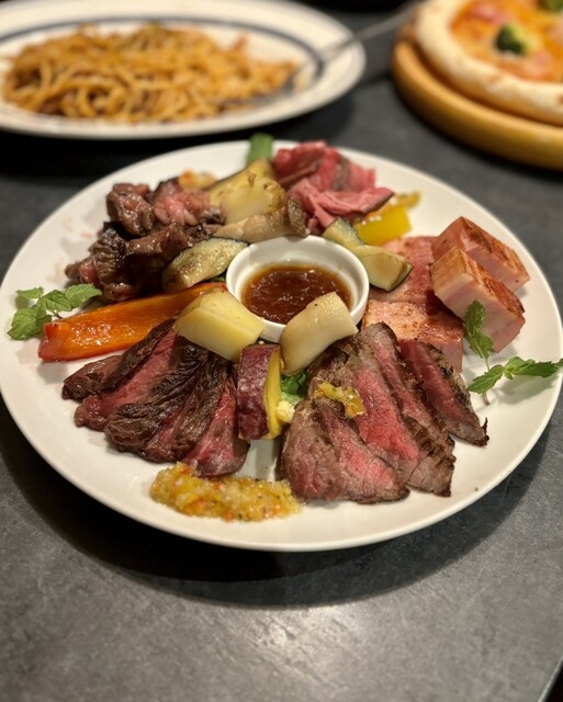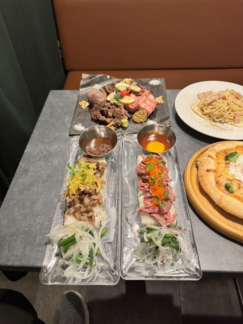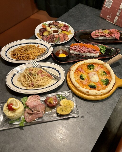 “肉×イタリアン×映え”をコンセプトに、石窯焼きピザや肉寿司、ステーキなどを食べ飲み放題で提供。 誕生日や記念日には、花火付きのデザートプレートでサプライズ演出も可能!