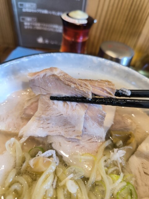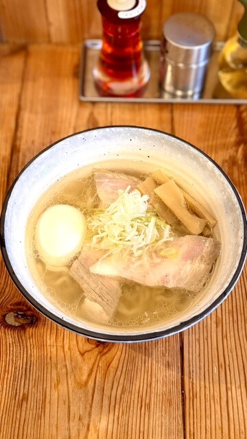 ●総評 甘みと旨みの強いマイルドな塩味のスープ、そしてトロトロで厚めの豚バラチャーシューは、この店ならではの個性があり美味しい。 近くに寄ればリピート優先候補。 ●オーダー 会津山塩らーめん 大 980円 ○スープ 甘みを感じ、鶏の香りと旨み、丸みのある塩味と旨みを感じ余韻へ。 ... 詳細を見る
