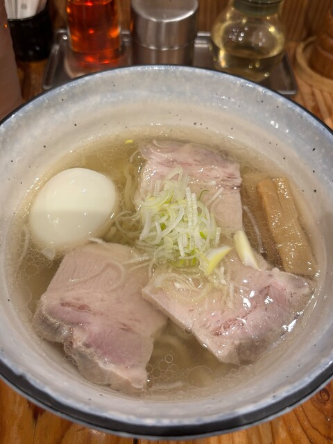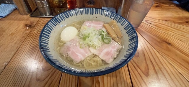 グランキューブでの研修会のお昼休憩、検索して見つけた最寄りのコチラのお店が気になり訪問。幸いに混み合う合間の入店ですぐに入れる。お腹空いてたこともあり、味玉塩らーめんの大盛をオーダー、程なく登場のらー...