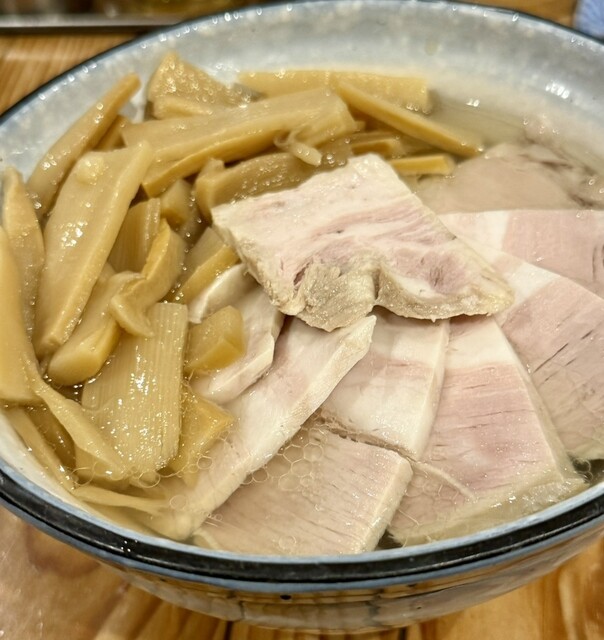 甘みと旨みの強いマイルドな塩味のスープ、そしてトロトロで厚めの豚バラチャーシューは、この店ならではの個性があり美味しい。