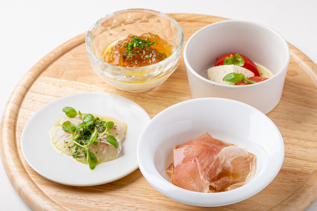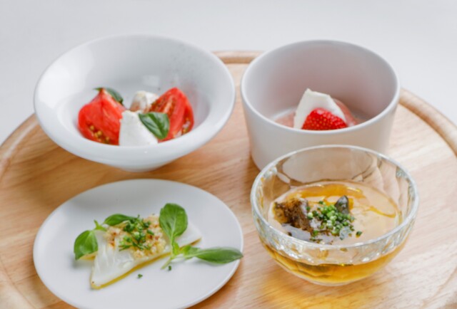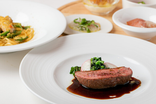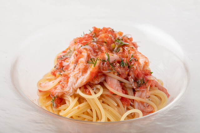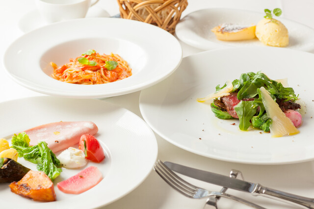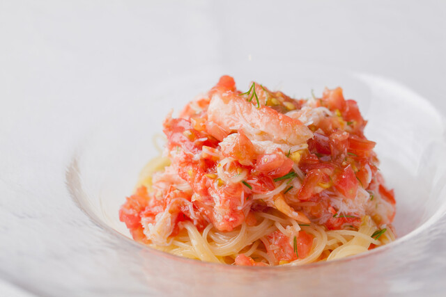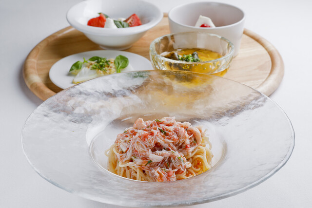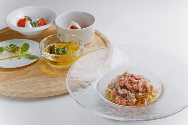「(ディナー)Bコース【アルバロンガのスペシャリテ】紅ズワイガニとフルーツトマトの冷製パスタを含む全5品 前菜4種、一品、冷製パスタ、肉料理、デザート+1ドリンク付」がおすすめです。