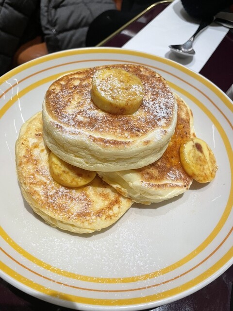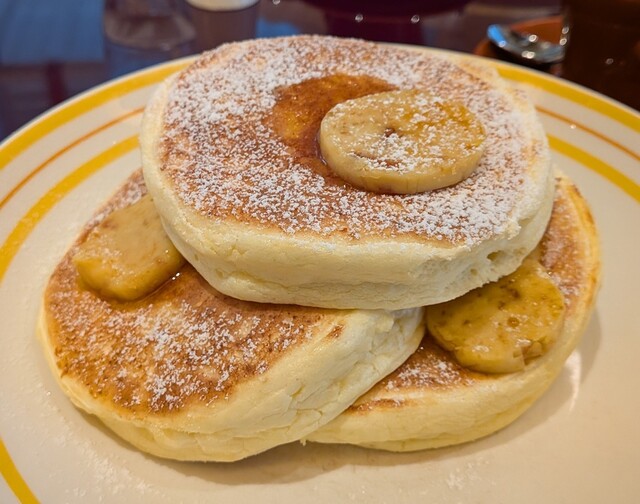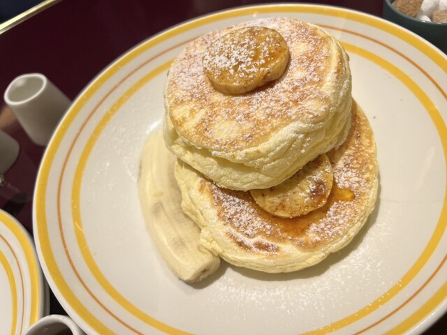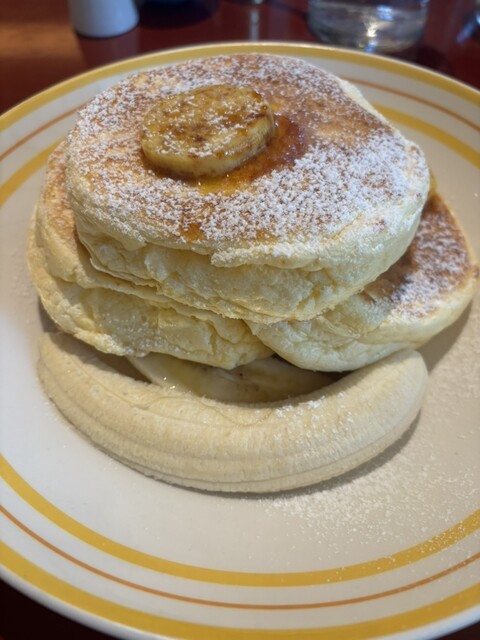 パンケーキはふわふわでバナナも下にしっかり入ってます。