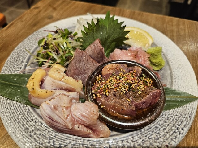 名物 板盛り【鮮魚・和牛・さつま極鶏 大摩桜】 1人前⇒2170円(税込)