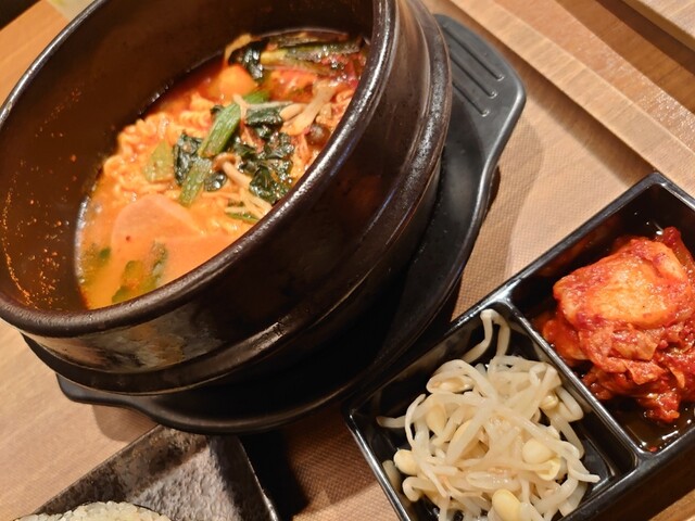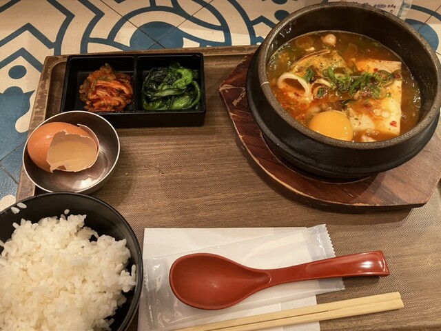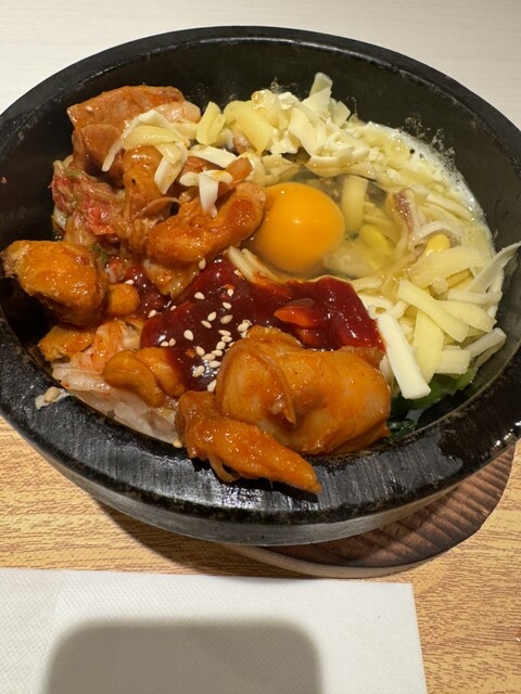 チーズ石焼ビビンパを選んだところ、石焼の器の中で、みるみるうちにチーズが溶けていったり、添えてある卵が熟していったりするのを見ながら楽しめました。 売り場の横に、お店備え付けのイ... 詳細を見る