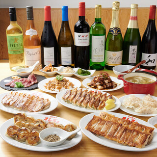 ○コース内容(4名様の場合) ・焼き餃子 ・紫蘇餃子 ・しょうが餃子 ・4種のキノコとバター餃子 ・エビ餃子(茹で) 各2人前ずつ ・スピード3種盛り ×2人前 ・蒸し鶏四川風 ・ポッサム ・スープ餃子 【飲み放題内容】 ・ハイボール ・生ビール ・酎ハイ各種 ・ワイン ・カクテル各種 ・ソフトドリンク各種 |