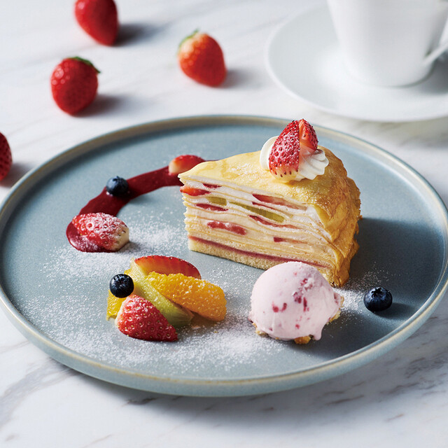 モロゾフ人気のプリンやチーズケーキはもちろん、店頭で一から仕立てる焼き立ての「ワッフル」は、カフェモロゾフの人気メニューです。