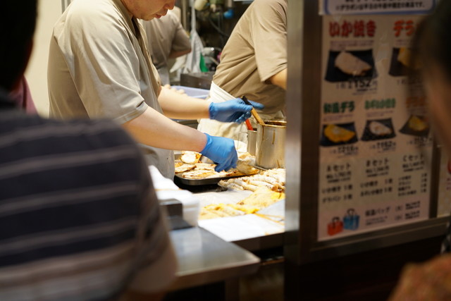 沢山の飲食店がある地下1階のスナックパークで一際人集りが出来ているのが「阪神名物 いか焼き」さん