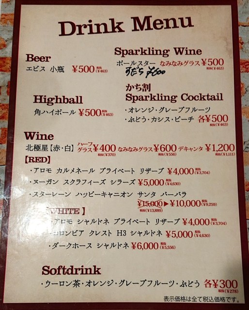 | ドリンク | 焼酎あり、ワインあり、カクテルあり、ワインにこだわる |