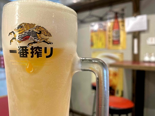 この日も駅ビルで一杯、やって帰ることにします。寒いですが身体がキンキンビールを求めていました笑 タイミングよくこちらの空席がありましたので、早速キンキンビールで乾杯♪