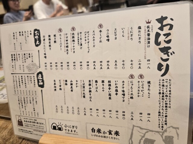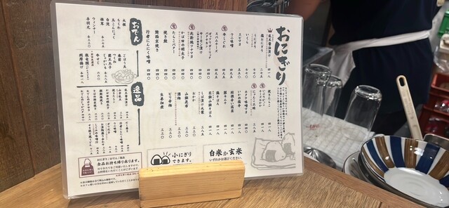 メニューはおにぎりが変わり種も色々あって30種くらいと豊富、ほかにおでんと肴...
