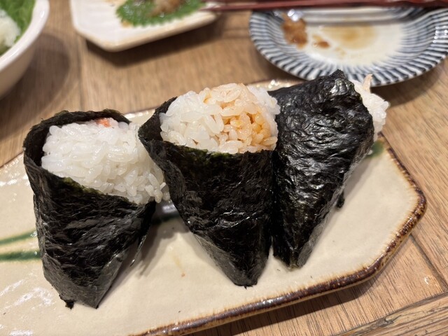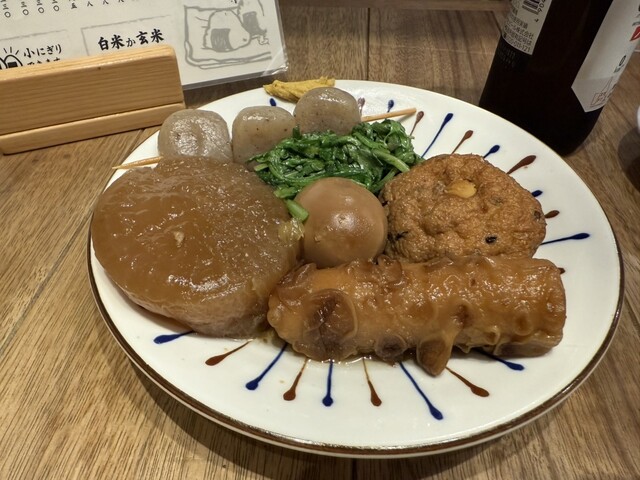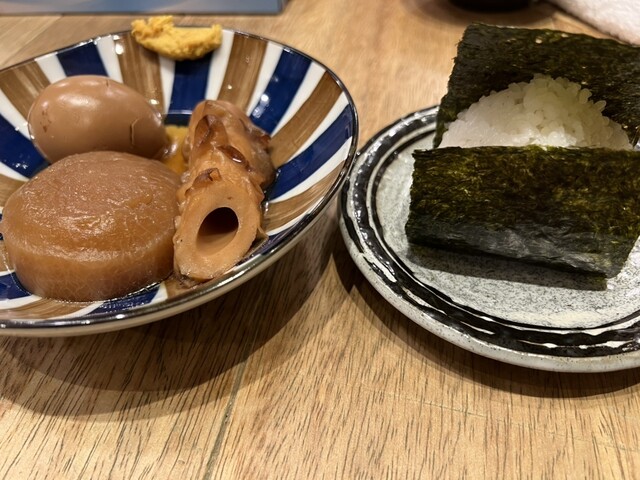 塩むすびが1番好きかもしれませんね。味噌汁、日本酒、おでんも合わせて最高の気分でした。夜遅くまでやってますがタイミングで入れない人たちもいらっしゃったので予約した方が吉だと思います。