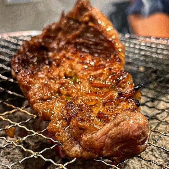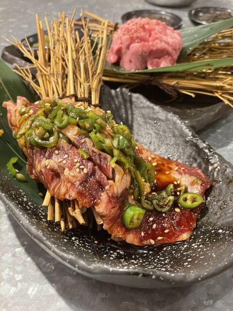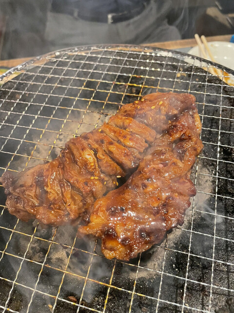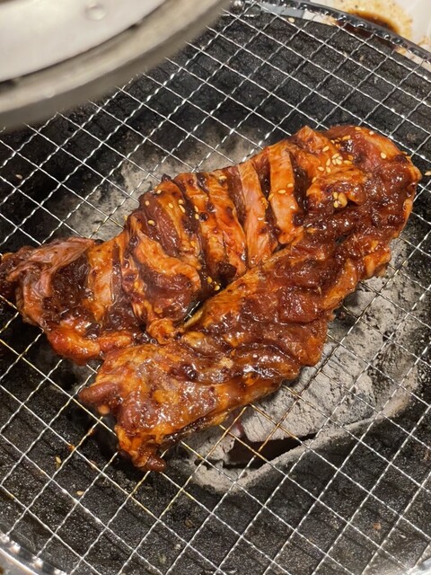 ピリ辛の特製ダレに漬け込んだドデカいハラミはインパクト大っ