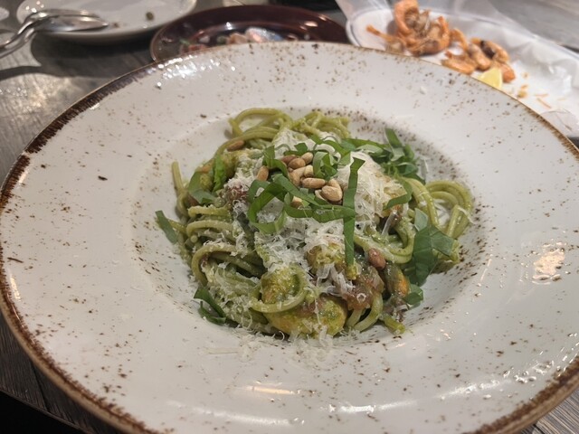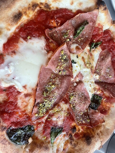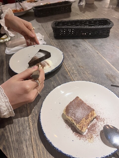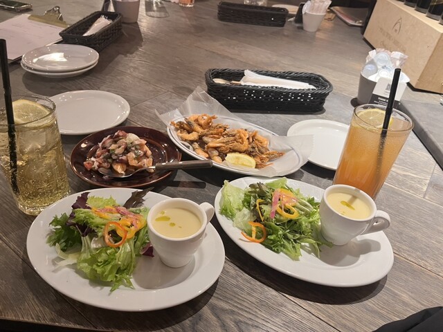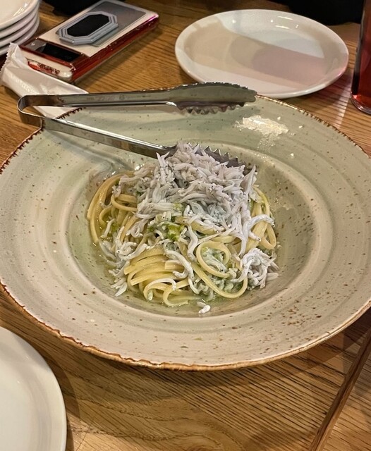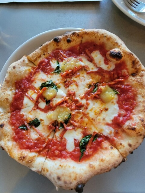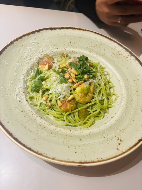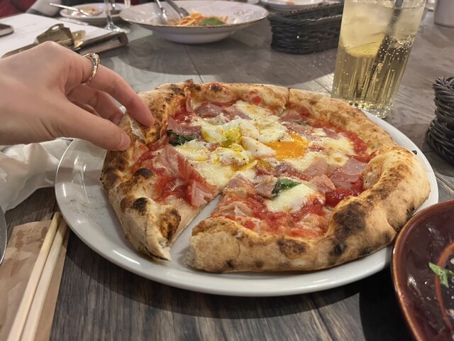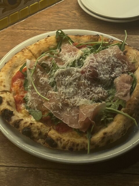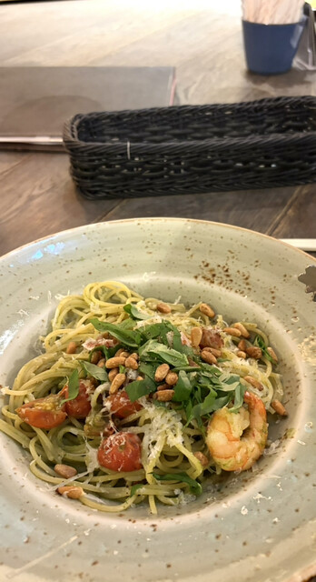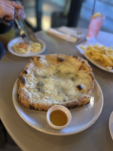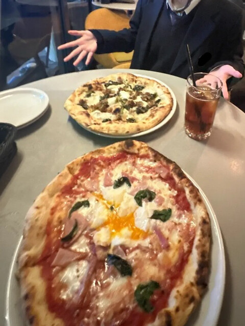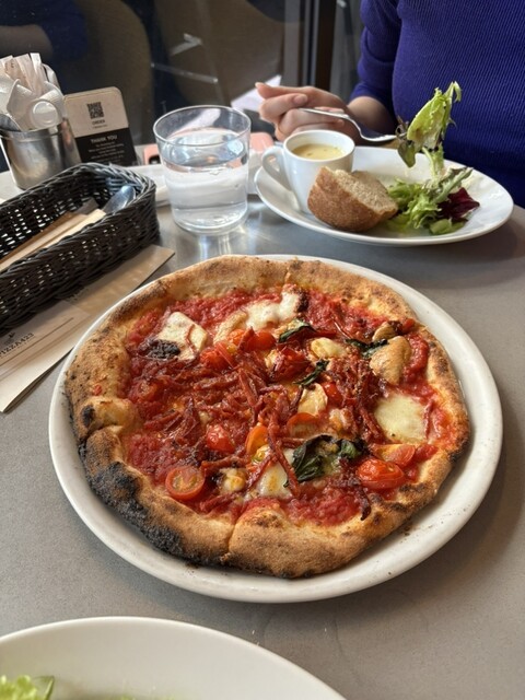 ピザをハーフ&ハーフで選べるのがありがたいです。ランチセットで友人とピザ、パスタをシェアしました。ピザの生地がおいしいです。店内は広いですが、立地が良いので予約していないと待たないといけなさそうでした。