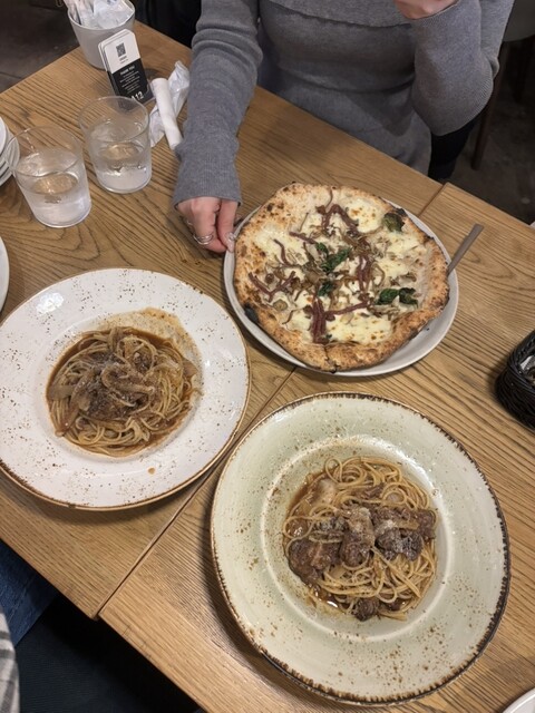 牛バラ肉と淡路玉ねぎの赤ワインソースパスタにしたんやけど、梅田の立地で1300円と思えんクオリティーでしたね!!!( ^-^ )b