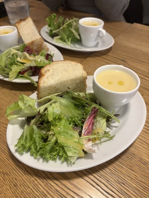 パスタランチにはサラダ・コーンスープにパンも着いてくるお得感*ˊᵕˋ*
