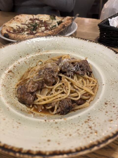 赤ワインの香りと牛バラのコクのあるパスタやった*ˊᵕˋ*