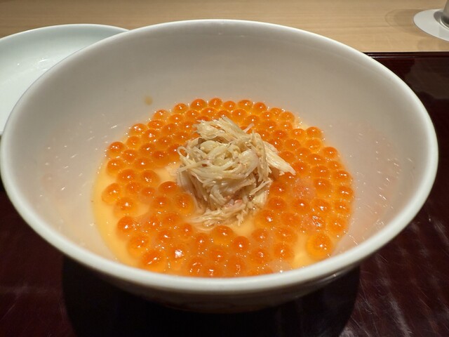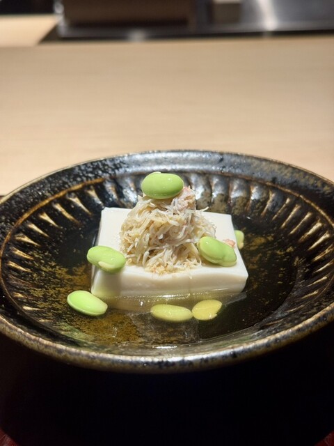 毛ガニと松茸ごま豆腐菊花あん