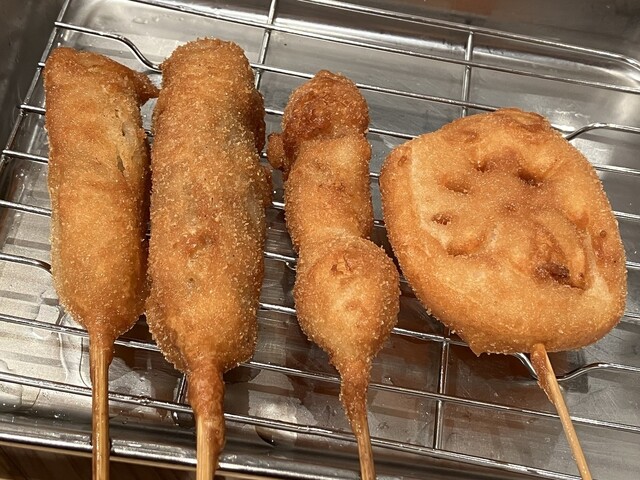 具材は、小ぶりですが、元祖もたこもれんこんも1串130円で、