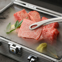 提供される和牛もショーケースで見れますしそのボリュームは圧巻。ジェラルミンケースから取り出されるA5和牛はドライア...