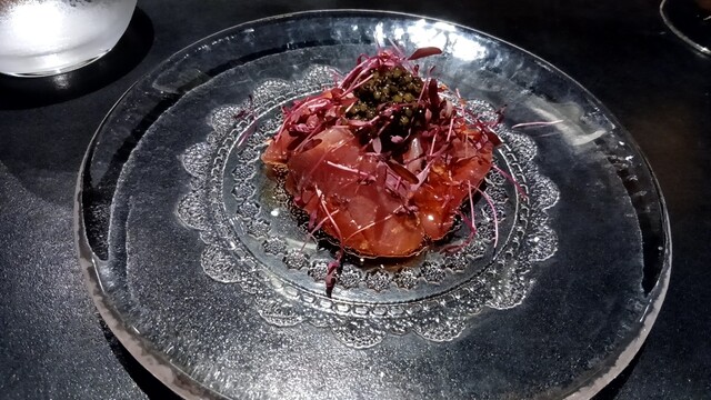 【大阪】JR東西線・北新地駅から歩いて2分ほどのビルの4階に佇んでいます。 食べログのネット予約で「★ディナー★充実内容の人気No1コース/シェフおすすめコース(2名様より承ります) 8品」を予約して、知人と2名で伺いました。 最初見落としてしまうほどの小さな看板の下のドアから入った店内は、カウ... 詳細を見る