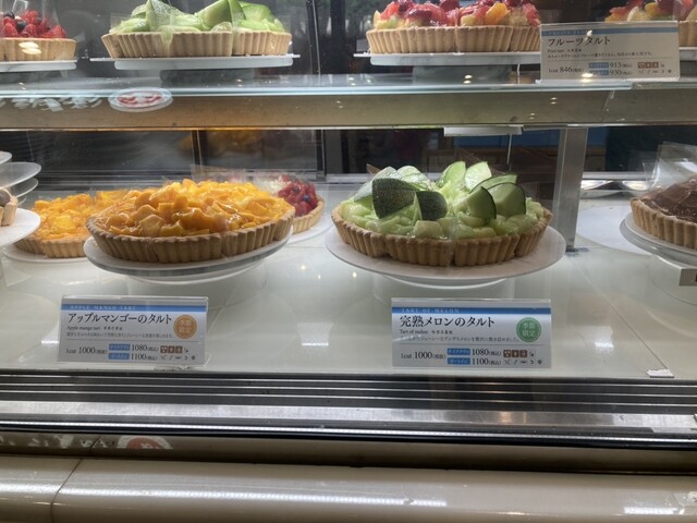 ショーケースに並ぶキラキラと輝くフルーツタルトたちが目に飛び込んできます。