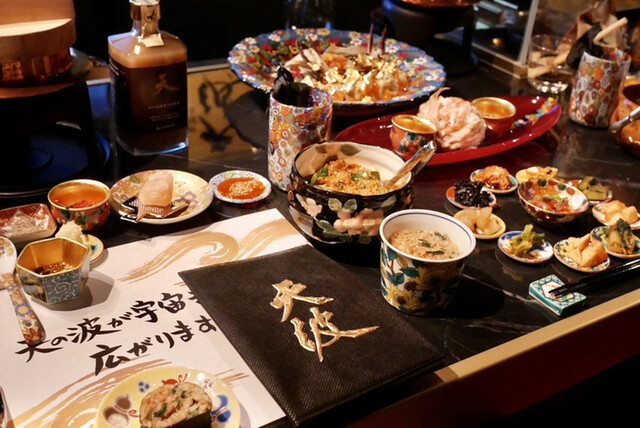 厳選された食材・調理方法・食器・空間 美食を追求した当店のオーナーが各地で出会った究極のもののみを使用したフルコースとなります。 帝王料理と云う作品をご堪能下さい。
