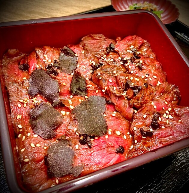 【はらみ&カルビのハーフ重】並2180円税込 +トリュフたまご(生卵)280円を付けました ✴︎ご飯は女子でちょうど良いくらいの お茶碗一杯分くらい ✴︎はらみとカルビ... 詳細を見る