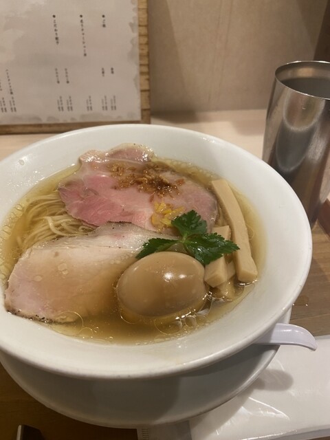 前回8月に訪れて「比内地鶏醤油ラーメン特製」を食べたので、今日は「黄金貝ラーメン特製1450円」にしようと鼻から決めて訪問 時間は14時、然程並んではいないのでは?と期待していたが、10人が外に並んでる 列に並んでいたが全然進まないので他の店に変更しようか、と一瞬頭をよぎったが、口も脳もラー... 詳細を見る