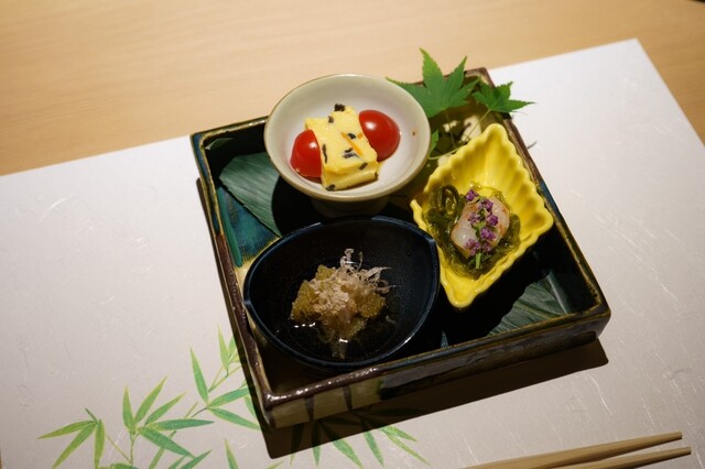 老舗有名料亭で腕を振るった経験を持つ料理人がひとつひとつ心を込めて創る四季折々の日本料理。季節の食材がもつ素材の良さを生かしながら伝統の技術と料理人のこだわりをご堪能下さい。日本料理は 『走り・旬・名残』という季節の食材の移り変わり、その良さを引き出すためにこだわり続け一期一会のおもてなし~旬感~との出会いを大切にしております。