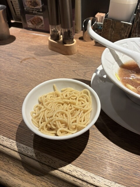 一番人気の「ピストル」は、名古屋コーチンの鶏ガラに貝の旨味を重ねた、琥珀色...