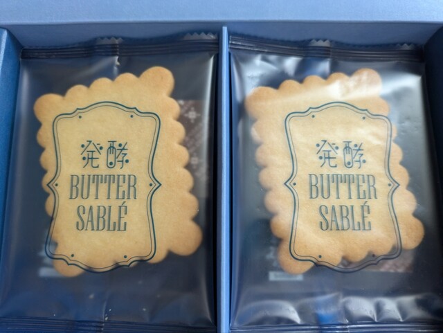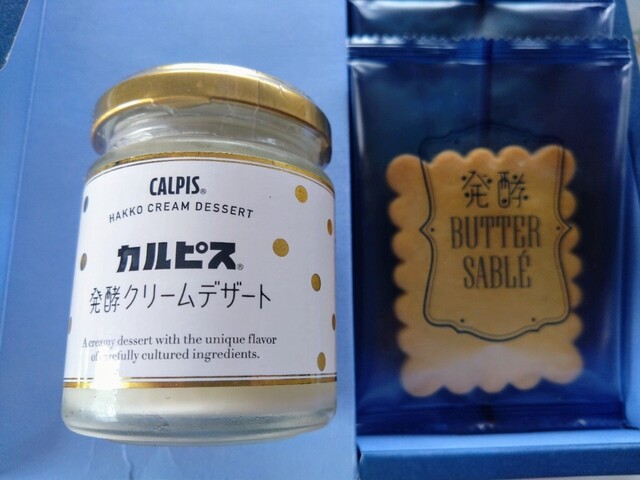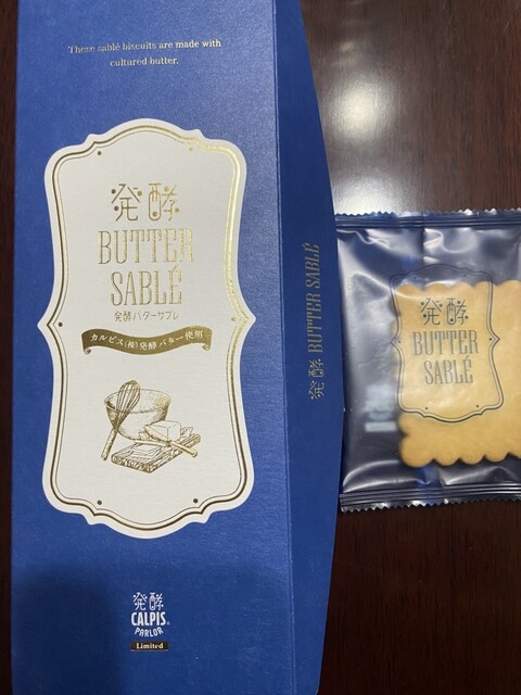 大阪梅田阪急で調達したお土産。高級感ある深い青をベースにしたパッケージに入った少し大きめの個包装のサブレは、カルピスの爽やかさとバターの風味が豊かで、サクサク舌触りよく、何枚でも食べられてしまいそうです。