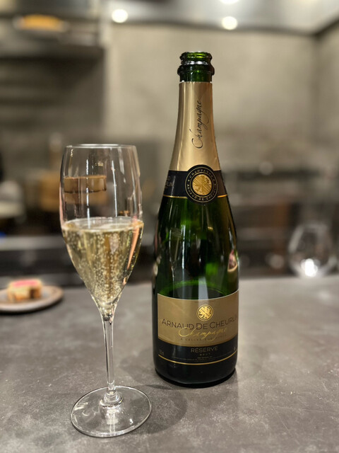 北新地で目の届く範囲のカウンターでコースを楽しみたい方に向く一軒です。フレンチとイタリアンを軸にしたイノベーティブで、今回はアルコールペアリング付き35,200円で予約訪問しました。