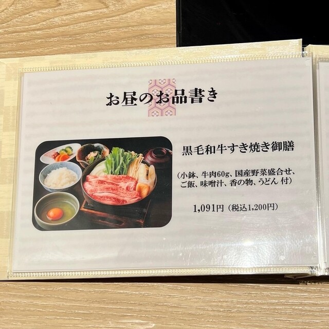 当店のランチメニュー「黒毛和牛すき焼き御膳」をお楽しみ頂けたようで、スタッフ一同大変嬉しく存じます。