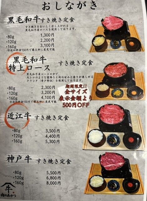 今回は黒毛和牛すき焼き定食の120g、2200円にしました。