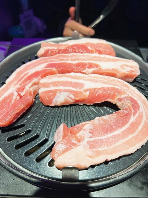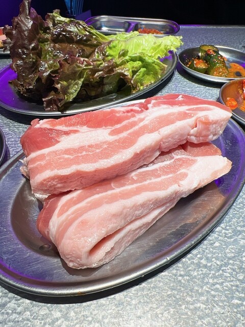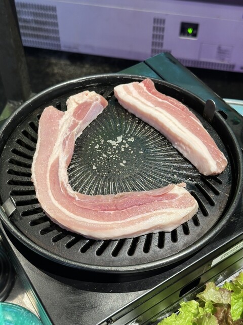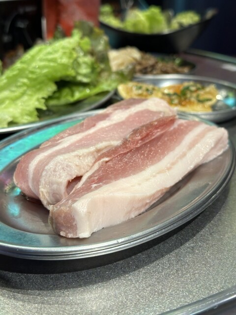肉厚のサムギョプサルはカリッと焼いて