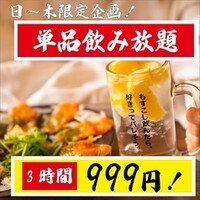 《他店圧倒の期間限定価格!!》これからの時期にピッタリ◆驚愕の3h999円の単品飲み放題コースがスタート!!ビール、カクテル、サワーにハイボールまで!この飲み放題の内容がなんとこの価格帯で楽しめるのはまさに圧巻◎お仕事終わりや仲間内での気軽な飲み会、二次会使いにも♪ご予約殺到中でございますのでご予約はお早めに◎※お一人様2品以上のご注文お願い致します。