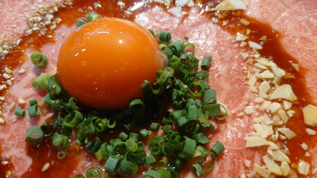 看板商品!口に入れた瞬間とろける「レアロースユッケ」