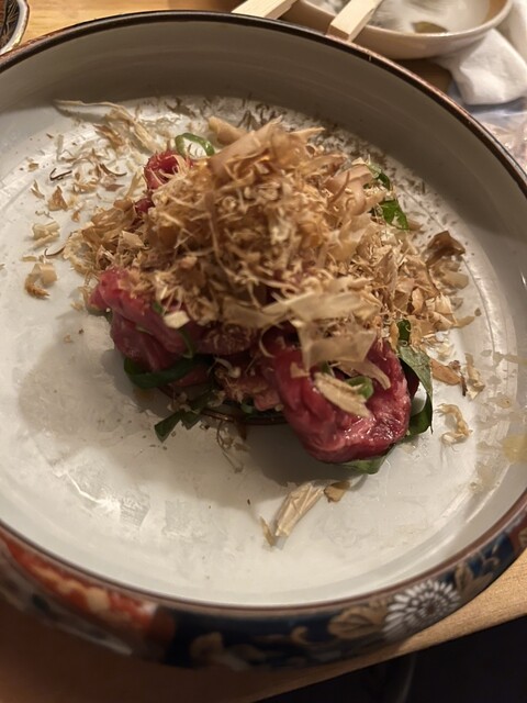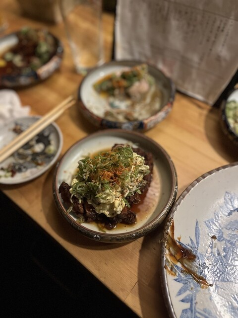 当店は肉料理にこだわった立ち飲み屋です!焼肉屋と割烹で経験を積んだシェフが作るカツサンドは分厚くてジューシーな味わいが特徴♪新鮮な和牛を使用しホルモンやハート刺し、ユッケなどもご提供。ちょい飲みからしっかり食事まで、リーズナブルな価格で上質なお肉料理が楽しめます◎店内は和の趣を感じる隠れ家的な雰囲気が魅力。30種類以上のクラフトジンと共に、にぎやかで楽しいひとときをお過ごしください!