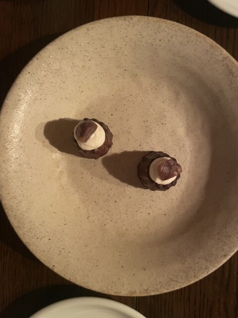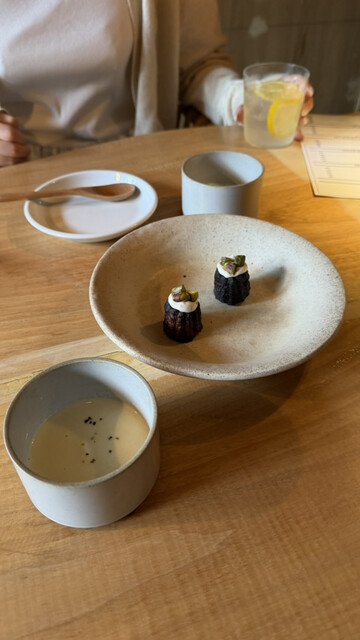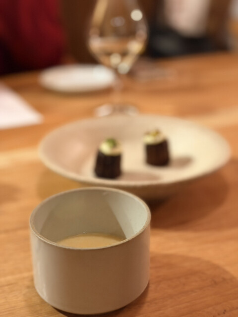 色々頼みましたが、お通しのポタージュとカヌレがどちらもめちゃくちゃ美味しく、そのあとのお料理がどんなものなのかワクワクしながら待ちました。