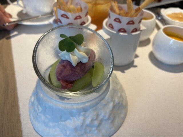 [シャインマスカット、葡萄のソルベ、ライムクリーム]