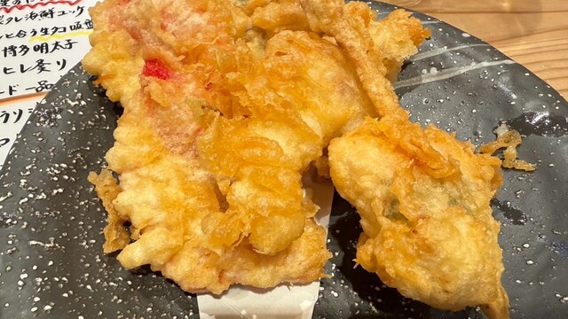 大阪堺の魚市場で深夜に営業し、床にアサリの貝殻をポイ捨てする事で有名だった「天ぷら大吉」の支店になります。