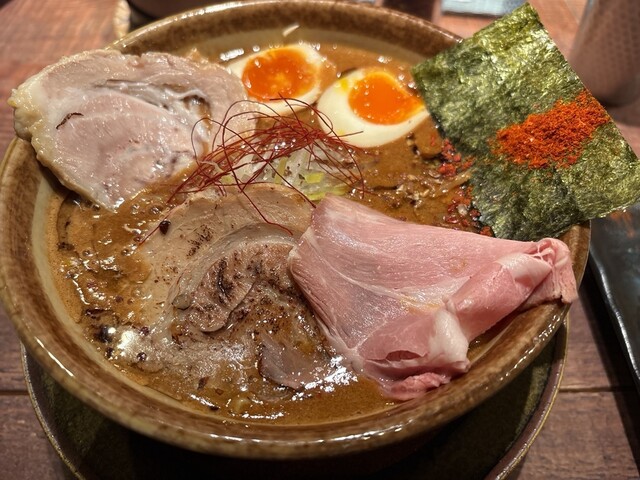兵庫県醤油と濃厚鶏白湯を乳化させた泡スープに国産小麦香る細麺合わせ、トッピングに薄切りレアチャーシューとシャキシャキ食感玉ねぎを乗せた濃厚だけど上品な一杯。