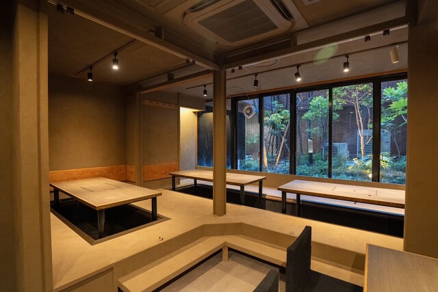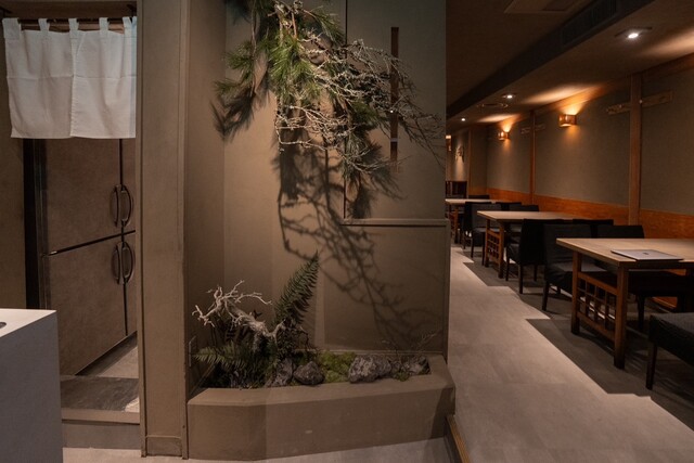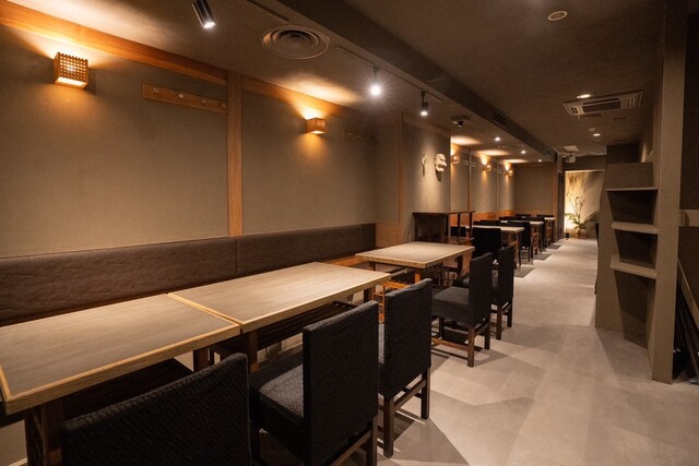 店内は照明控えめモノトーンの和モダン