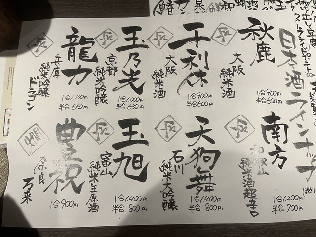 | ドリンク | 日本酒あり、焼酎あり、ワインあり、カクテルあり、日本酒にこだわる |