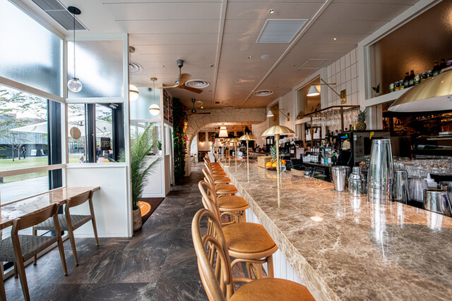 | 空間・設備 | オシャレな空間、落ち着いた空間、カウンター席あり、ソファー席あり、オープンテラスあり、ライブ・生演奏あり、バリアフリー、無料Wi-Fiあり、車椅子で入店可 |