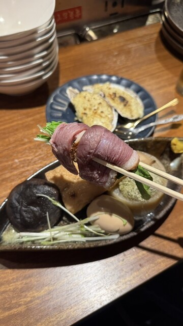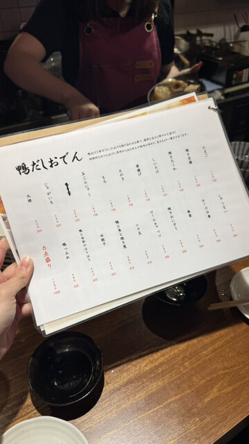 鴨の旨味がしっかりと溶け込んだ出汁は奥行きのある味わいで、大根や厚揚げなどの定番種から、水餃子やしゅうまいといった変わり種まで、何を頼んでも間違いない美味しさ。飲み干したくなるほど出汁が絶品でした。
