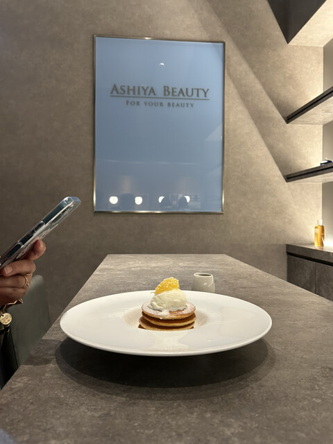 友人に誘っていただき初来店! 初めて入る施設だったので少し迷いましたが、6階まで上がると案内の方がいてアシヤカフェを探してるんです...と伝えると無事到着! 外観はガラス張りで、シックでおしゃれな雰囲気。 入り口には美味しそうなフルーツも飾られていておしゃれ〜! 席は奥の壁際に案内していただき、 イチジクのタルトと、シャインマスカットが乗ったカスタードプリンを注文! 1... 詳細を見る