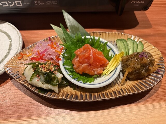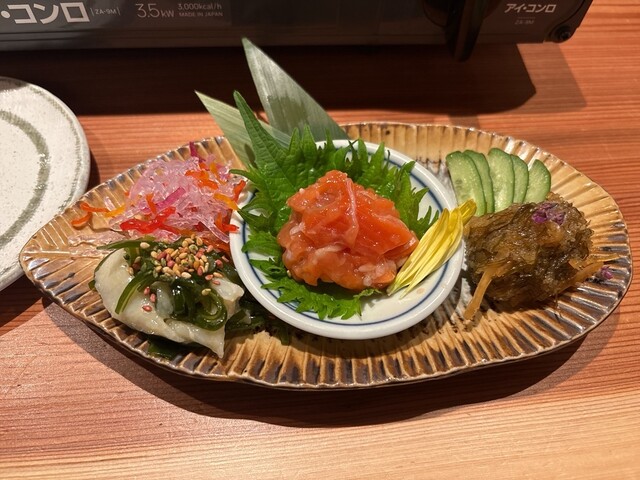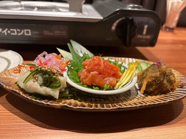 博多、函館、串本の漁港から直送された新鮮な魚介が自慢の当店。炉端焼きやお造り、海鮮丼など、豊富なメニューをご用意しています。利き酒師のオーナーが全国各地から厳選した日本酒は、海鮮との相性抜群。さらに、和モダンで落ち着いた雰囲気の店内には、六角形のカウンター席があり、調理風景を間近でご覧いただけます。靴を脱いで寛げる個室は最大15名様まで利用可能です。デートや観光など、幅広いシーンでご利用ください。
